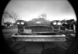 C’est en partant de cette pratique archaï;que de la photographie que j’ai décidé, en 2001, de l’appliquer au cinéma en me fabriquant un premier prototype en carton de caméra sténopé 35mm. Par la suite j’ai eu la chance de trouver à la brocante du Ciné-Club de Fleury-Mérogis un vieux chargeur de caméra 35mm que j’ai fait modifier en adaptant une platine coulissante qui obstrue la chambre noire du chargeur, avec au centre une très fine plaque d’acier munie de son trou sténopé, et j’ai fait installer une poigné à l’extérieur pour pouvoir avancer le film à la main vue par vue.