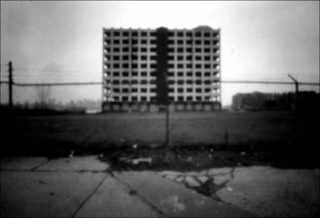 Le geste que je venais d’avoir était encore pour moi une bonne intuition. J’aurais pu m’acheter une bonnette spéciale pour protéger le micro du vent et revenir faire ce son seul. Au lieu de ça je me suis accommodé, j’ai fait simplement avec ce que j’avais sous la main. Au final, j’utilise la même technique de capture pour le son que pour l’image. En abritant le micro dans un trou, les ondes sonores que j’enregistre ne sont plus celles que j’entends, mais celles qu’on peut entendre au fond du trou. A partir de ce moment, j’ai enregistré la ville à travers ces trous… Ce sont ces sons distordus, vrillés, cisaillés, modifiés dans leur perception, comme les images, qui ont été samplés par Philippe pour venir témoigner à la même hauteur que celles des images de la musique et du timbre de la ville. Pour moi, le travail de Philippe a été la part de surprise la plus étonnante dans ce projet.