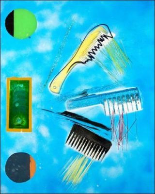 Des chaussettes sales, des peignes, des livres et des objets en tous genres, peuplent le travail de Brian Belott. Comme libérés de leur poids et de leur fonction, ils semblent flotter sur et sous des surfaces brillantes, miroitantes, aux couleurs saturées empruntées aux impressions des années 1960-1970.