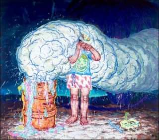 Taylor McKimens est peintre et dessinateur. Dans ses toiles grand format, il dresse le portrait d’une Amérique aux couleurs criardes et qui transpire la banalité. Il ne s’agit pourtant pas de faire une critique sociale de l’Amérique. Taylor McKimens propose une peinture qui évoque la matière organique, et un dessin où les corps, les plantes, les architectures et les objets semblent bouger et grouiller.