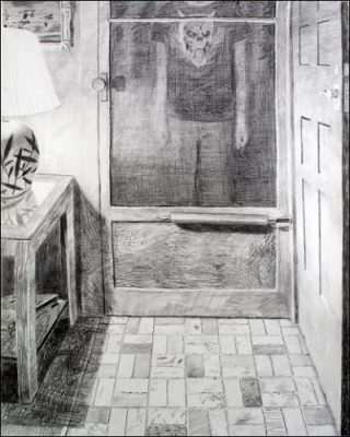 Le réalisme des dessins de Matt Bollinger, le noir et blanc du graphite, le cadrage en grand angle renvoient à la photographie ou au plan cinématographique. Dans About Midnight Saturday, ces éléments sont associés à un témoignage sonore relatant un drame familial; ils ressuscitent un passé inquiétant, dramatique. Émanant des intérieurs, une lumière électrique combat l’hostilité du monde extérieur, un monde en suspens.