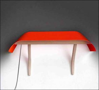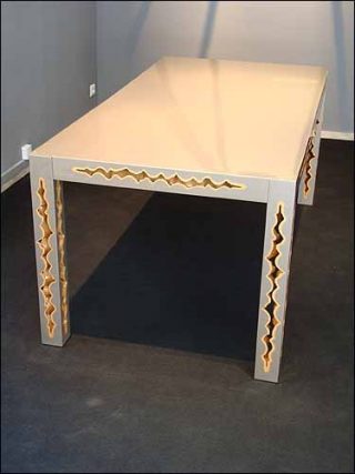 — Table introvertie, 2008. Chêne massif traitement polyester, couleur au choix. 90 x 180 x 80 cm.