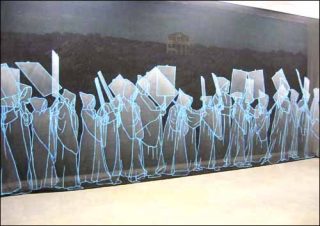 — Left Behind #3, 2005. Décor sur toile, acrylique. 320 x 730 cm.