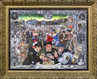 Ces tableaux racontent la vie de leurs sujets et mêlent parfois textes, collages et objets. Les bordures des cadres deviennent alors les supports de petites saynètes où se joue l’atrocité d’un monde surréaliste.