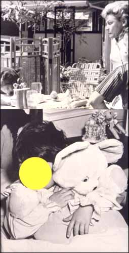 Les aplats de couleur, plus ou moins opaques, plus ou moins lisses et nets, quand ils ne font pas intrusion sans raison apparente dans l’image, en oblitèrent déjà des motifs, principaux ou secondaires (poules picorant dans une basse-cour, ou couple attablé chez un traiteur), ce qui en réactive d’autres (face rubiconde d’un charcutier, ou faces aveugles d’une planche de police pour portrait-robot). Les associations d’images, hétérogènes par leur origine (cinéma, magazine, album de photo) et leur texture (tirages argentiques ou impression grossièrement tramée), pervertissent les codes qui sont sensés les régir, les détourne, avec humour, de leur sens initial. De micro scénarii naissent, balbutiants et mineurs.