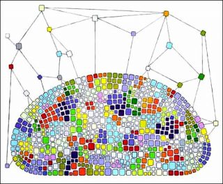 — Building a Better Mushroom, 2007. Acrylic and paint marker on canvas. 160 x 193 cm.