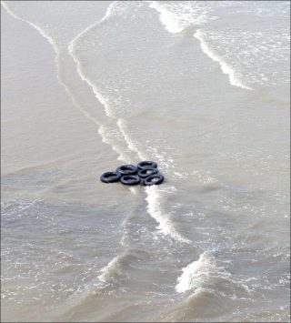 La première étape du projet de Joséphine Desmenez n’est pas photographique : elle consiste à réaliser dans l’urgence, en Sicile, un ensemble d’objets à partir des restes collectés sur place. Ces derniers sont transformés en de nouveaux objets tels qu’un drapeau, une guirlande multicolore ou encore un radeau, qui sont ensuite photographiés sur les récifs siciliens. Puis, poursuivant la démarche, d’autres installations sont créées à partir des objets découverts sur les plages et d’éléments apportés par l’artiste.