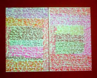 L’artiste semble s’absorber entièrement dans les quadrillages des pages de papier millimétré ou à petits carreaux. L’écriture fait le tour ou suit la ligne et contient ce que, jusque-là , il s’était refusé à montrer : la ligne diagonale et le plein, le plein de la vie du corps, et d’un sujet presque sans histoire, s’il n’y avait justement le signalement par l’art de la vie elle-même dans le décompte du temps.