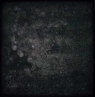 — Jean-Luc Vilmouth, Comme une nuit étoilée, 2009. Bois perforé, néons. 130 x 130 x 12 cm