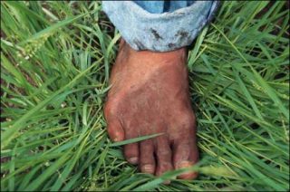 — Jean-Luc Vilmouth, Un pied sur terre, 1997-2009. Photographie couleur. 30 x 40 cm