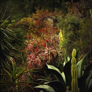 Le paysage empreint d’une intention esthétique est le lien qui unit en l’homme, d’une manière inséparable et contradictoire, la nature et la culture. L’image prend la forme d’un tableau photographique. Le choix des formes végétales luxuriantes et denses, des couleurs -ocre, vert, bleu- codifiées dans la peinture de paysage et du dispositif lumineux – le clair obscur – renforce le caractère inhabituel de la scène.