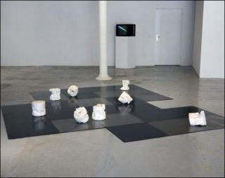 Une œuvre de Jérémy Laffon donne de cette idée une représentation assez éloquente. Il s’agit d’une sculpture constituée d’une quantité innombrable de chewing-gum Hollywood qui, après avoir été soigneusement mâchés, ont été agglomérés jusqu’à former une boule volumineuse. L’oeuvre porte clairement la trace du processus qui l’a fait naître, mais plus encore elle donne la mesure du temps et de l’énergie consacrés à produire la pièce — soit en l’occurrence à mâcher des chewing-gum — cristallisée en un corps solide d’un poids à peu près équivalent à celui de l’artiste. Amalgame entre le mouvement assidu et répétitif du mâchonnement et le geste inlassablement répété d’un travail laborieux, l’oeuvre opère la fusion en une même image paradoxale de deux registres d’activité pour le moins antinomiques. Car si le mâchonnement peut effectivement être considéré comme une activité, c’est pour autant qu’il en constitue un cas extrême, une sorte de degré zéro, précisément dépourvu de tout ce à quoi on associe généralement une activité, supposée créative ou du moins un minimum productive, impliquant un certain degré d’intention et de volonté et répondant à quelque objectif ou projet.