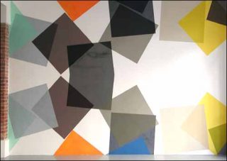 Cécile Bart joue avec notre acuité visuelle et physique. Trois murs du nouvel espace de la Galerie Franck sont investis par des formes géométriques carrées faites de tissu en tergal peint. Les traces de pinceaux volontairement laissées apparentes tiennent lieu d’empreintes du geste artistique.