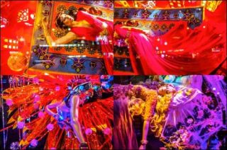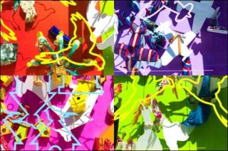 Dans cette corne d’abondance bariolée tout est panachage, fatras, méli-mélo spectaculaire, offerts pêle-mêle aux spectateurs. Cet effet chaotique est encore démultiplié par la disposition en miroir de quatre prises de vues à l’intérieur d’une même image. La photographie est ainsi le reflet de vie et d’énergie: Kaléidoscope est explosion de couleurs vives.