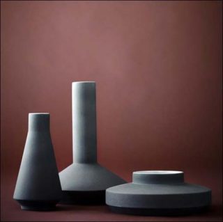 Les vases de Milie Seyppel sont inspirés par l’architecture industrielle, les machines et les outils de fabrication de masse: des lignes droites, des bords coupants, des formes claires, une surface douce et soyeuse qui rappelle le béton ou la pierre. Les marques de couleurs différentes sur la surface ainsi que le vitrage intérieur irrégulier rend chaque vase unique. Vases reflète ainsi astucieusement l’opposition entre la production de masse et des objets d’art uniques.