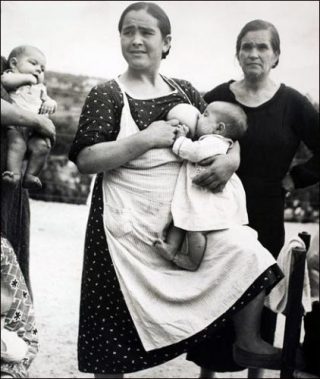 Les deux pendants de son œuvre fusionnent finalement dans le reportage que le gouvernement républicain lui commande afin de couvrir la guerre civile espagnole à partir de 1937. D’une part, son travail nous documente sur les conditions de vie de la population espagnole lors du conflit. En cela, elle prend plus de recul que son ami Capa qui, quant à lui, va directement sur le front et photographie les soldats au combat ou les retraites des vaincus. Dès lors, Kati Horna parcourt l’Aragon, Barcelone, Valence, Madrid ou l’Andalousie, pour y photographier une mère donnant le sein à son enfant, des femmes lavant le linge au lavoir public, ou une réunion anarchiste. Les enfants dans les rues ont l’air égarés, on sent leur regard perdu. Le désespoir des femmes se lit sur leur visage buriné de rides, coiffé d’un foulard noir.