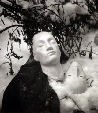 On découvre en effet la série Marché aux puces, dont le titre évoque immanquablement les balades de Breton et Giacometti à la brocante de Saint-Ouen en quête d’objets à récupérer, assembler et exposer tels quels. Les clichés de Kati Horna révèlent un bric-à -brac d’objets délaissés, matérialisant la fameuse formule de Lautréamont, dont les surréalistes ont fait leur devise et leur propre définition de la beauté: «la rencontre fortuite d’un parapluie et d’une machine à coudre». On y perçoit donc de vieux tableaux, des commodes et du vieux mobilier, des vases, des statuettes et des bibelots entremêlés. Mais surtout, Kati Horna se focalise sur des poupées et des mannequins, souvent décapités, manchots ou démembrés, eux aussi si chers à Breton et sa bande, afin d’illustrer «l’inquiétante étrangeté» du quotidien, à travers ces objets mornes pouvant néanmoins se faire passer pour des êtres vivants et animés.