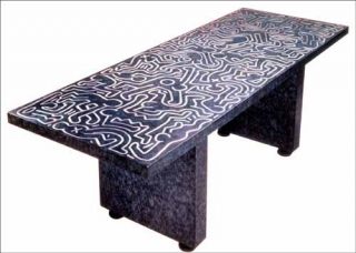 — Dining Table, 1989. Bronze à patine bleue et noire et marqueterie d’étain. 73,6 x 213 x 81 cm.