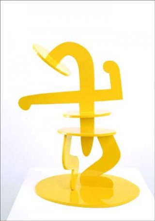 Saturant chacune de ses compositions d’une écriture à mi-chemin entre Michaud et les writters des rues, il est un calligraphe atypique à la manière de Ben. S’il appartient pleinement à l’art qui s’affiche, c’est qu’il progresse sur des territoires non balisés par l’art, mais par la publicité. En décidant d’ancrer son œuvre à ciel ouvert, notamment avec ses sculptures, il se place d’emblée en outsider.