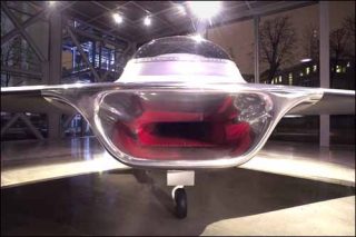 Une chose est sûre, le carénage, le cockpit en verre, les instruments de mesures, sont bien présents. L’objet volant a été baptisé Kalvin 40 du «nom du personnage central de Solaris, un film de Andreï Tarkovski, et de Lord Kevin, un physicien et mathématicien écossais du XIXe siècle connu pour ses recherches en thermodynamique».