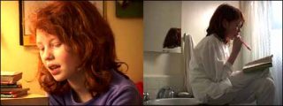 La deuxième projection a lieu sur deux écrans alignés bord à bord afin de constituer une même image très horizontale. Une jeune fille rousse répond aux questions (en anglais) d’un professeur invisible, placé hors-champ.