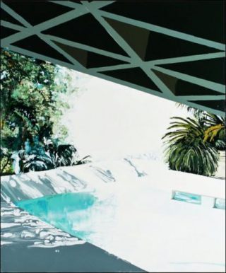 Kirsten Everberg nous révèle une série de peintures représentant des architectures et des environnements naturels, emblématiques de Los Angeles, tels que le Greystone Mansion, le Château Marmont, le Bradbury Building et le Los Angeles Arboretum, souvent utilisés comme décors de cinéma.