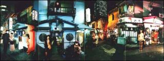Au numéro 24 de la même rue est présentée une série plus récente de l’artiste, intitulée Shinorama. Abandonnant le noir et blanc, Kishin Shinoyama réalise dans les années 1980 de larges panoramas sur diasec, vivement colorés, où il retranscrit la vie tokyoïte, dans ses aspects tant traditionnels, comme le tatouage rituel (Shinorama Tokyo. Tatoo, 1988), populaires (scène de piscine publique bondée dans Shinorama Tokyo. Pool, 1986) que désenchantés (amas d’ordures de Shinorama Tokyo. Yumenoshima, 1986).