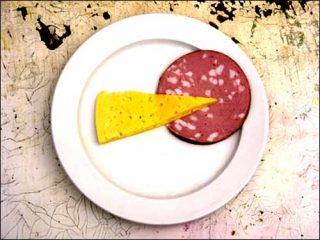En découvrant la nouvelle série photographique «Kitchen Suprematism» (2005) du groupe Blue Noses, surgit le souvenir de l’esprit facétieux de Wim Delvoye à l’œuvre dans sa série «Marble Floor» (1999) : des photographies montrant de la charcuterie découpée et arrangée pour simuler les motifs de sols marbrés.