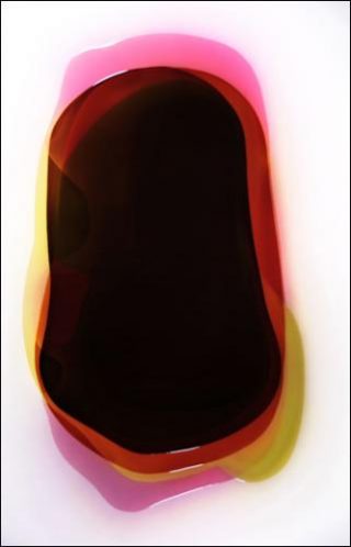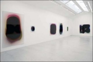 Peter Zimmermann revient en France avec une nouvelle série. Au milieu de ses tableaux se trouve une tache noire. Peintre abstrait, il travaille par couches successives pour arriver à la bonne couleur. Il mélange ses pigments à de la résine pour obtenir un effet miroir.