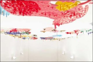 La deuxième innovation provient de sa dernière peinture murale. Plafonnante et dégoulinante, elle goutte telle une pluie figée. Cette technique à moins d’un an. C’est en visitant l’opéra de Palerme que l’idée lui est venue. L’ensemble du bâtiment avait été rénové, à l’exception du plafond taché par des auréoles humides. C’est en pensant à ce décor et aux accidents domestiques comme les inondations de salles de bains, qu’il s’est lancé dans l’aventure d’une peinture débordante comme une douche. Si d’un point de vue artistique ce genre oscille entre la peinture de Tiepolo et celle de Pollock, l’aventure de la serpillère reste attachée à l’expérience de n’importe quel voisin.