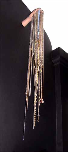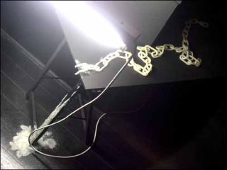 Une autre critique se fait jour dans ce qui est exposé. Critique impertinente et moqueuse — adolescente pour tout dire, à l’image de ces doigts aux airs de pine de chien ou de ces mains fixées aux cimaises et d’où pendouillent un fatras de chaînettes, qui rappellent à la fois le gothique de pacotille sous le signe duquel est placé cette exposition, mais aussi les mains sortant des murs du palais de la Bête dans le film de Cocteau La Belle et la Bête, ou encore la verroterie kitsch d’adolescents en mal d’identité et se définissant par rapport à leur code vestimentaire — « skater », gothique, etc.