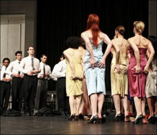Kontakthof et son décor grisonnant de salle de bal. Son cortège de chaises. La danse des déhanchements. Et la litanie des accouplements, je te mords l’oreille, je te pince les fesses, je cherche la tendresse et j’offre la cruauté. Entre les hommes et les femmes, ça n’a jamais été simple. Chorus-line des séductions maladroites, de l’inconfort et du malaise. Kontakthof n’a pas d’âge. C’est une pièce qui traverse les générations. (Jean-Marc Adolphe)