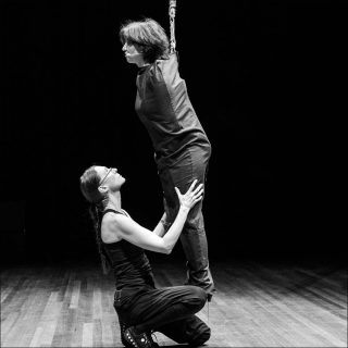 Soirée chorégraphique, Déplacés, danser sans frontières propose donc, en première partie, la performance de Kubra Khademi, Qanchiq. Soit une heure de réflexion, en acte, sur la liberté par les gestes et les corps. En langue turque, notamment, qanchik [kancik] signifie ‘chienne’. Un mot qui a le même sens qu’en français ou qu’en anglais (avec l’homologue bitch). Et vêtue d’une longue robe noire, en laisse, Kubra Khademi se débat. Avec sa mémoire notamment. Celle d’une éducation dans laquelle sa mère lui répétait de prier Dieu-Allah si elle voulait voir ses vÅ“ux exaucés. Avec la mémoire de prières aux tournures du type : « Je rampe vers toi comme une chienne pour que tu réalises mes rêves ». Mémoire d’un asservissement volontaire, à réclamer la laisse en échange d’une récompense… Kubra Khademi livre ainsi une performance encore inédite, autour du conditionnement à l’humiliation consentie, en vue de son démantèlement.