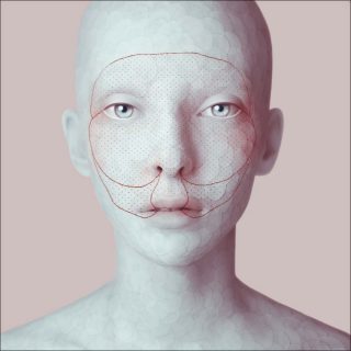 Le temps suspendu appelle à se retrouver face à soi-même, c’est ce que nous dit l’œuvre d’Oleg Dou, The Mask. Le visage au centre de la photographie est de face et regarde droit devant lui. Le souffle est matérialisé par des traits rouges entre les différentes parties vitales du visage, tandis que l’enveloppe charnelle du personnage est faite d’écailles, ce qui la distingue d’une vraie peau. Ce visage semble ne pas véritablement exister mais incarne une intériorité retrouvée.