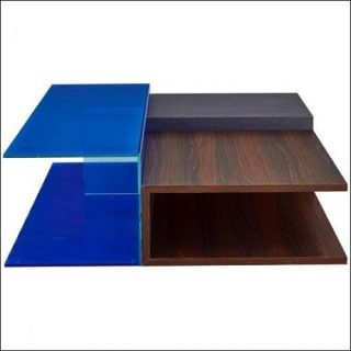 La nouvelle collection de Marie Christine Dorner éditée par Ligne Roset, Un & Deux, est constituée d’une table basse et d’un bout de canapé. Un & Deux consiste en une déclinaison d’une forme unique, le «U» à angles droits, en différentes tailles, positions et matières. Ainsi la table basse accumule trois «U» de formats divers, respectivement en verre bleu, placage aspect chêne fumé ou chêne ton noir.