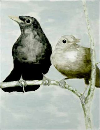 C’est l’ordinaire qui se livre dans ses tableaux: deux oiseaux sur une branche, un cygne qui flotte sur l’eau, une fine branche d’arbre qui se détache sur un ciel bleu… Il capture des images simples mais en même temps qu’il leur donne corps et forme sur la toile, elles semblent disparaître et s’effacer, comme dans les vieilles photographies aux couleurs délavées par le temps.