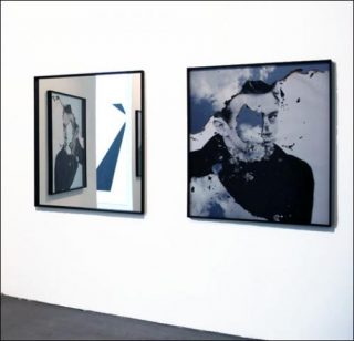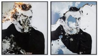 — Douglas Gordon, Self Portrait of You + Me and Me + You + You + Me + Me + You (03), 2011. Photo, impressions brûlées, miroir.