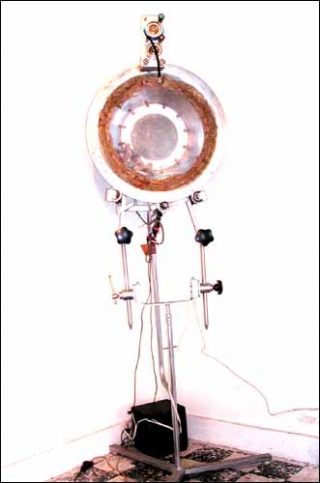 L’atelier de La Grande Barge est un immense laboratoire de fabrication de machines fantastiques, de sculptures en mouvement à la fois concentrés de poésie dérisoire et embrayeurs de rêves. Ces machines-sculptures ludiques produisent du mouvement, du son ou de l’image, ce sont de véritables spectacles d’objets. On est convié à appuyer sur les boutons, à actionner la manivelle pour que tel mécanisme s’enclenche et que la magie opère. Comme de grands enfants, on attend que les œuvres s’animent devant nous.