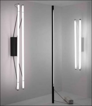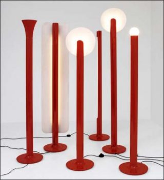 L’année de La Dolce Vita (1960), ces designers sont en pleine possession de leurs moyens, auteurs de certains des luminaires les plus aboutis de l’histoire du design. Ce sont les italiens Achille & Pier Giacomo Castiglioni, Joe Colombo, Gio Ponti, Gino Sarfatti, Vittoriano Vigano, les français Pierre Guariche, Robert Mathieu, Joseph-André Motte, Pierre Paulin et Alain Richard. 1960, soit trois années avant que l’artiste américain Dan Flavin ne mette au point ses premières oeuvres en fluo mais six ans après la création par Gino Sarfatti de ses mythiques plafonnier 3026 et lampadaire 1063, deux lampes magistrales bien qu’absolument a minima, conçues par le montage d’un simple tube fluo¬rescent.