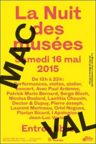 Pour cette Nuit des musées 2015, le Mac Val propose un programme de performances, visites, ateliers et concerts autour des expositions en cours: «Chercher le garçon» et «Avec et sans peinture».