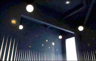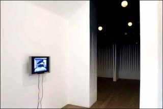 Dans un clair-obscur de circonstance, on découvre que les murs de la salle principale de la galerie ont été «customisés» par l’artiste mexicain Gonzalo Lebrija. Un wall painting parsemé d’étoiles dorées nous enveloppe d’une douce nuit qu’éclairent une série de globes lumineux évoquant autant de lunes apaisantes. Nul spot aveuglant, nul bande-son tonitruante, tout n’est que calme et volupté au sein de cette cosmogonie graphique, inspirée d’une scène du film de Martin Scorsese The Aviator, et qui n’est pas sans rappeler la voûte céleste médiévale traditionnellement faite de lapis-lazuli et de feuille d’or. «Politique, fortune, astrologie, romantisme, glamour et rédemption spirituelle, semblent converger dans ce véritable ready-made d’un simulacre de ré-interprétation d’un diagramme emblématique sacré», commente le critique Cristian Silva.