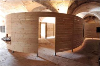 Enfin, l’année dernière, sur invitation de Jacky-Ruth Meyer au Centre d’Art Le Lait, à Albi, j’ai exposé une palissade en bois toute en courbes, qui partait du balcon suspendu au-dessus du Tarn, pénétrait dans le centre d’art et serpentait dans la grande salle voûtée pour disparaître dans un tunnel rempli d’eau. Dans ce projet, j’utilisais la surface de la palissade pour l’accrochage de mes propres œuvres. À Lyon comme à Albi, on pourra passer de part en part de la pièce par des ouvertures en forme de portes, et je reprends également cette idée d’une palissade qui ondule ; mais contrairement au projet précédent, j’offrirai une surface d’intervention à d’autres artistes.
