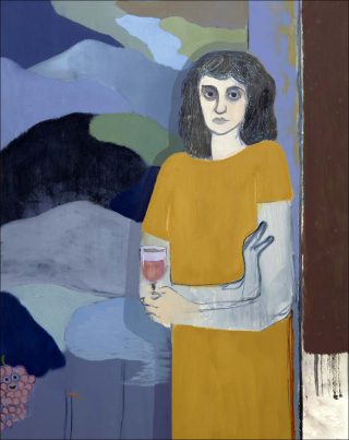 La sexualité omniprésente chez Pierre Klossowski est abordée moins frontalement dans les tableaux du jeune artiste russe Sanya Kantarovsky. A travers un style pictural inspiré de l’illustration et faussement naïf se devine une critique non dénuée d’humour de nombreux sujets d’ordre sociétal et politique, comme dans le tableau Effacement, peint en 2016, où des plumes de paon jaillissent des fesses d’un personnage dénudé.