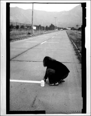Peut-être d’ailleurs la thématique de l’exposition outrepasse-t-elle son rôle et arbitrairement préfère Act Up ou le Colectivo de Acciones de Arte (CADA) chilien à d’autres utilisateurs politico-artistiques des signes, éventuellement plus pertinents. Peut-être ne borne-t-elle pas suffisamment les usages des signes. Mais c’est que Lotty Rosenfled, militante du CADA, qui peint de grandes croix blanches sur toutes les routes du monde, brouille précisément ces frontières. C’est que l’usage du signe justement, comme élément esseulé et plein du sens, décrit la courbe de la création, incessant retournement de la culture sur elle-même, sur la nature, du signe qui est au signe qui devient pour être à nouveau, comme toute pierre précieuse, signe ostensible de la nature, étudié, classé, taillé en ce que pour l’homme tout rhombicuboctaèdre est un rubis qu’il expose.