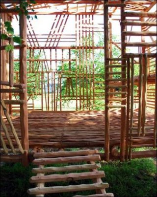 Lauréate du Prix Découverte des Amis du Palais de Tokyo en 2014, Sara Favriau déploie une sculpture monumentale et poétique faite de tasseaux de bois taillés, sculptés et assemblés en cabanes-réceptacles, au sein desquelles plusieurs autres artistes sont invités à exposer.
