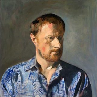 À La Criée, autour de la table, sont accrochées des peintures sur bois de 40 x 40 cm. Ces tableaux sont des portraits de personnes qui ont posé une ou plusieurs fois pour l’artiste. Partiellement effacés et repris à chaque séance de pose, palimpsestes du temps sur les visages, ces portraits vont et viennent, mobiles, transportables, de passage.