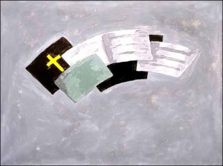 — Sans titre, 2007. Tiflex on tarpaulin, galvanised steel tubing, plastic straps. 115 x 153 x 4 cm.