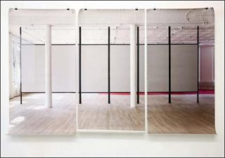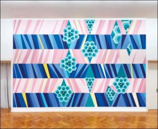 En contre-point, l’œuvre in situ de François Mazabraud vient recouvrir un pan de mur de la galerie de languettes bleues utilisées dans la profession dentaire, dont il convertit l’aspect utilitaire en surface décorative: tels une tapisserie ou un papier peint.