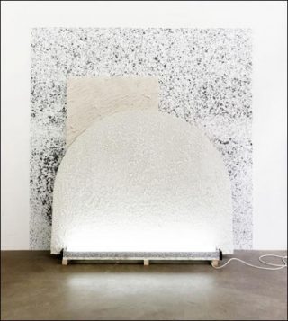 Si les terriens du futur vivent sur une planète où seule l’industrie est le garant du monde matériel, alors le post-futur, symbolisé ici par la météorite, est une parodie du futur, il est une copie de la copie, il annonce un monde devenu totalement amnésique dans son rapport à ses ressources naturelles. Sa présence ouvre le champ des spéculations: quelles mutations profondes et effrayantes la terre a-t-elle produites pour engendrer cet élément grotesque et menaçant?