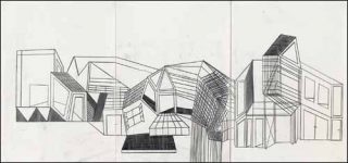 — Contruction 4, 2007. Crayon sur papier. Triptyque, 21 x 29,7 cm chaque feuille.
